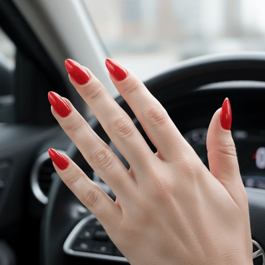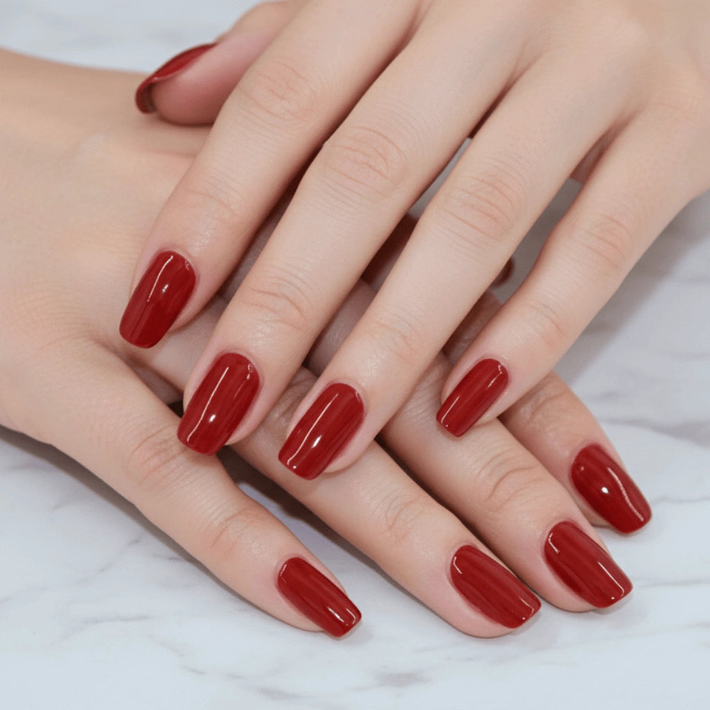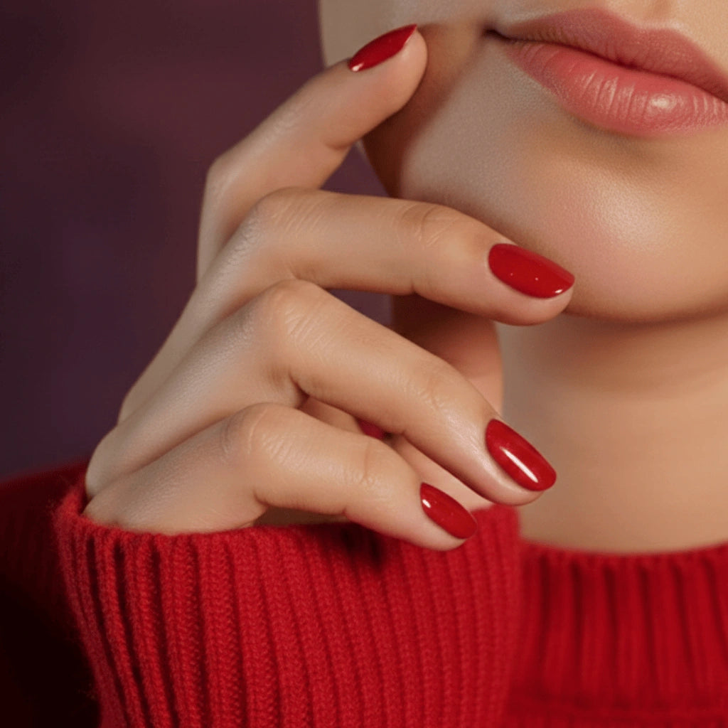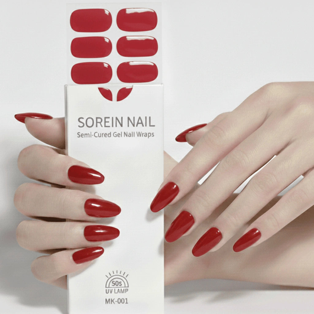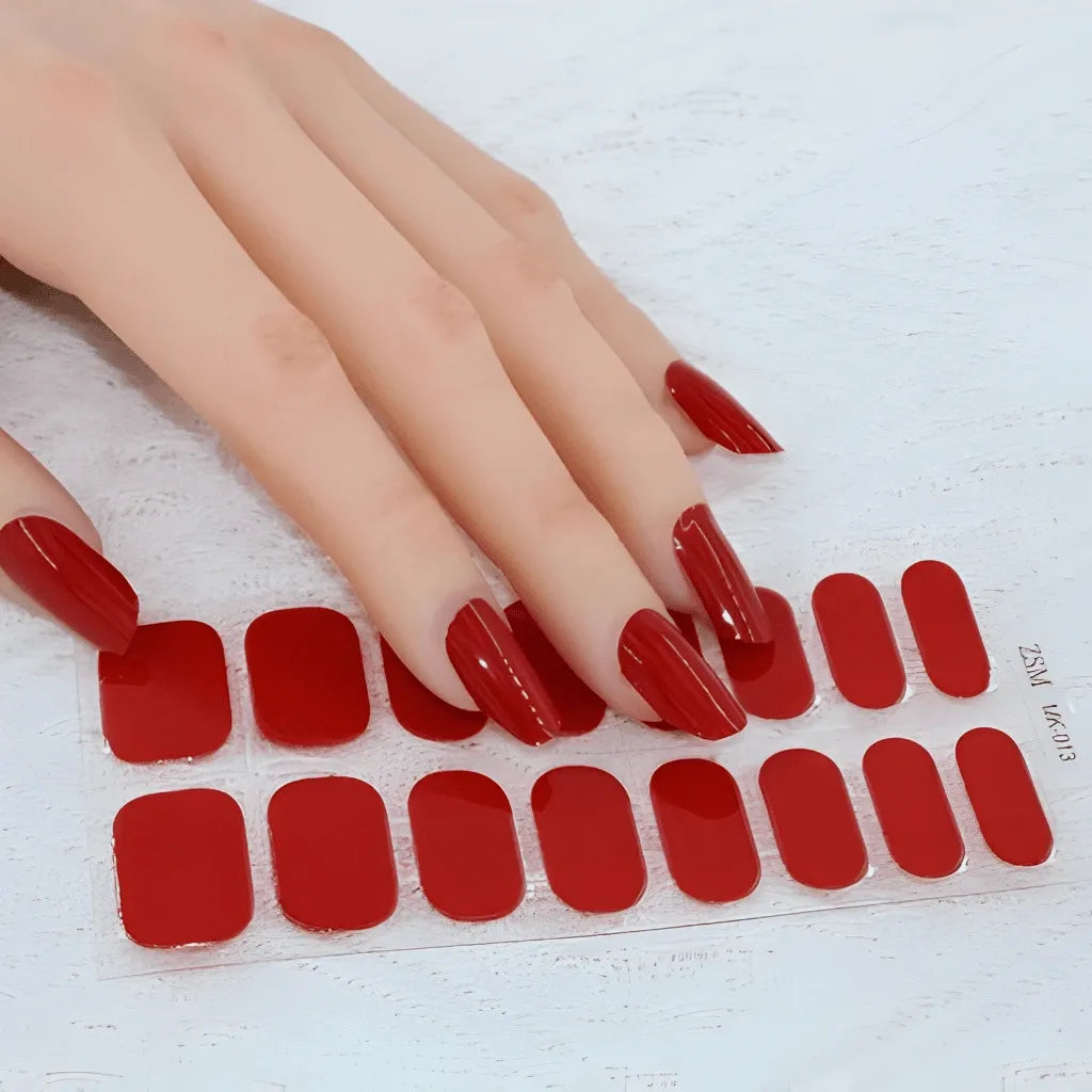 מדבקת לק ג'ל חצי מוקשה בגוון אדום בוהק וחי.