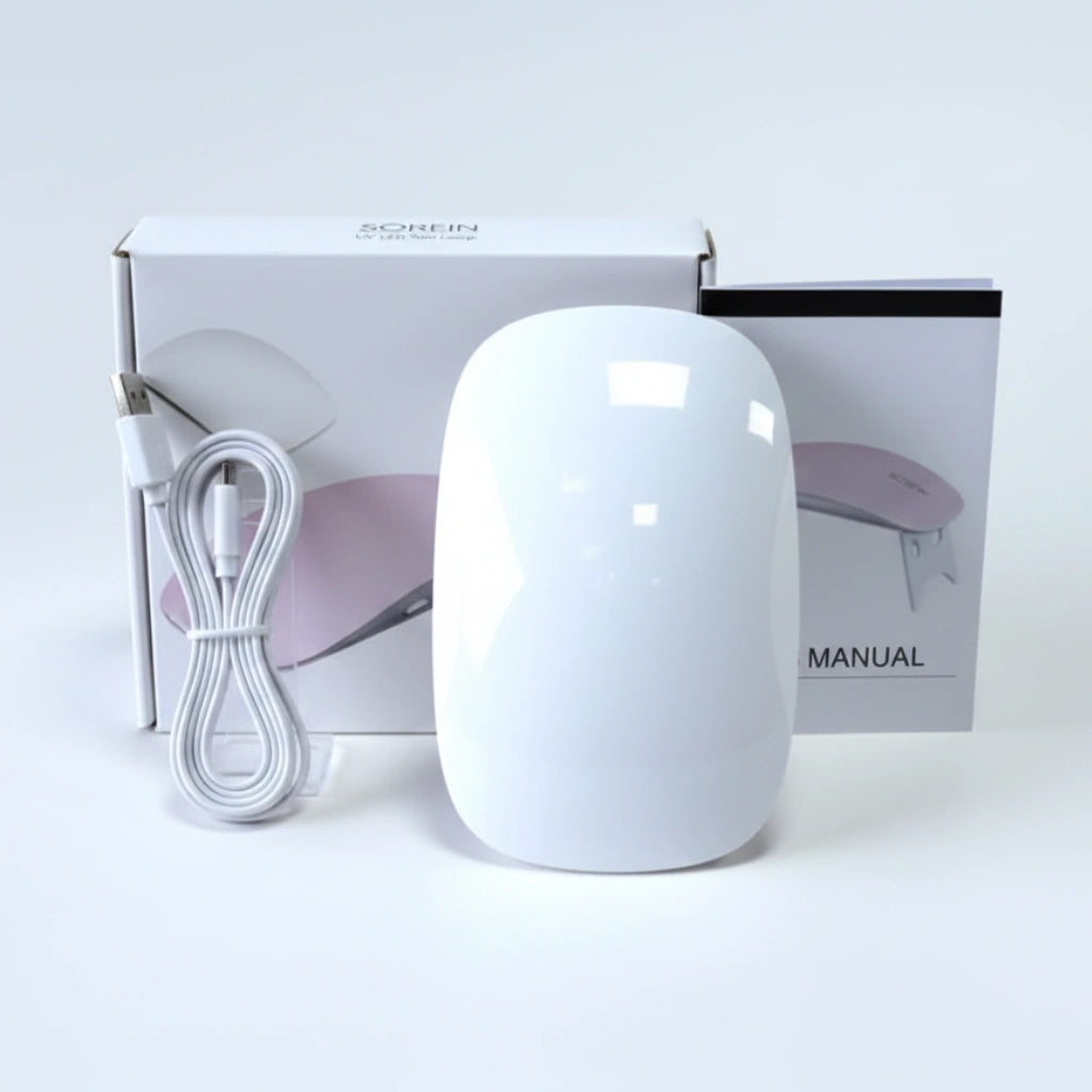 מנורת UV איכותית לייבוש מדבקות לק ג'ל קומפקטית, נוחה לשימוש ומותאמת במיוחד לטיפוח ביתי או מקצועי.המנורה פועלת בעוצמה של 6 W באמצעות חיבור USB, ומספקת ייבוש אחיד ויעיל תוך 2 דקות בלבד.